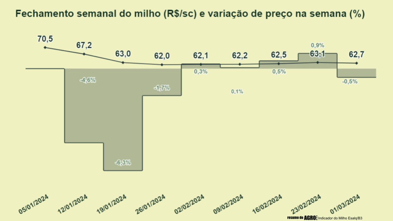O milho deu uma subidinha marota na B3 na sexta-feira, mas lá nos EUA o danado caiu de novo. E o tal do dólar comercial futuro deu uma recuada e fechou a semana valendo R$ 4,967.