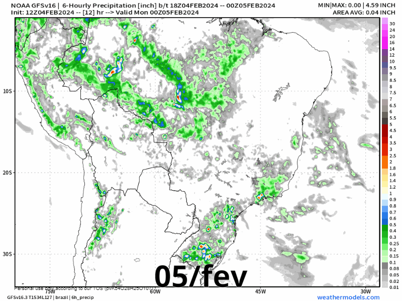 Previsão de chuvas do dia 05/fev a 12/fev no Brasil